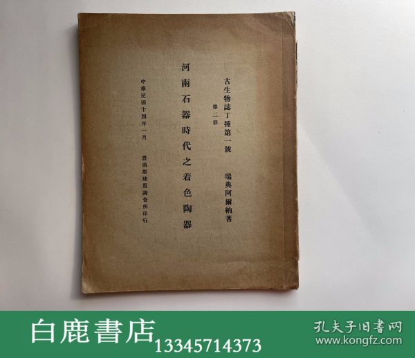 【白鹿书店】古生物志丁种第一号 第二册 河南石器时代之着色陶器 民国1925年初版