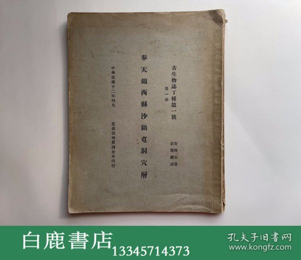 【白鹿书店】古生物志丁种第一号 第一册 奉天锦西县沙锅屯洞穴层报告书 民国1923年初版