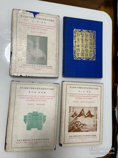全网最平价:民国《参加伦敦中国艺术国际展览会出品图说》,精装四册;【民国精品艺术画册,汇集古代古代瓷器、铜器、书画、玉器、珐琅器、古籍等文化遗产精品,代表中国参加国际艺术品展会,令世界叹为观止……;】三册原书衣尚存,收藏佳品,物美价廉,值得拥有