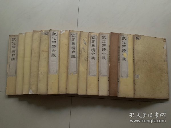 稀见光绪年间黄蜡笺原装白纸精印乾隆内府本《钦定西清古鉴》存卷4-18 22-23 32-40共14册