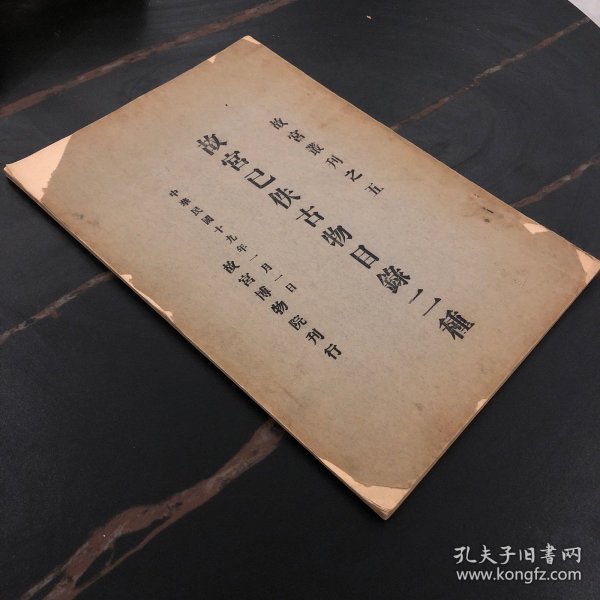1930年 故宫博物院刊行《故宫已佚古物目录二种》十六开 道林纸本 一册(古物目录上有1870件文物,据此方知清内府珍宝注入民间之渠道)绝版收藏