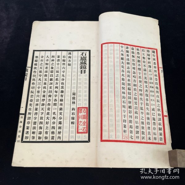 《石庐藏镜目》朱墨印本,一册全 民国18年闽侯石庐印行,铜镜研究专著 庐金石丛刊本